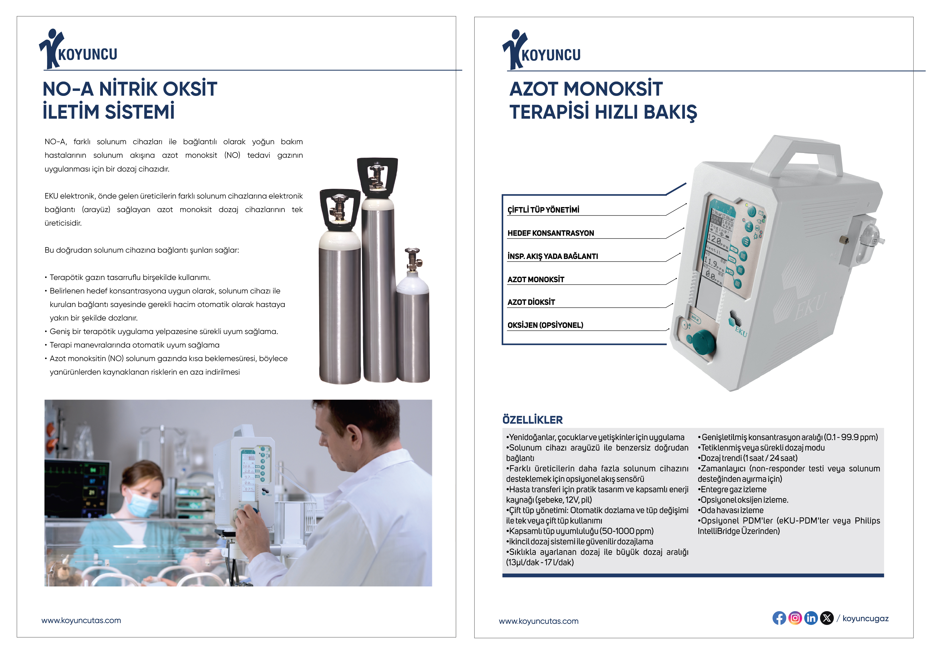 İnhalasyon yoluyla verilen azot monoksit (INO) tedavisinin klinik olarak sağdan sola şant gereksinimini azaltması ve kardiyak rahatlama sağlaması amaçlanmaktadır. Solunum cihazına bağlı hastalarda oksijenlenmenin iyileştirilmesi için solunum gazına azot monoksit (NO) eklenir. Bu tedavi, yenidoğanlar, çocuklar ve yetişkinlerde pulmoner hipertansiyon, oksijen yetersizliği, neonatal akciğer yetmezliği, yenidoğanlarda kalıcı pulmoner hipertansiyon, pulmoner fibrozis, kronik obstrüktif akciğer hastalıkları (KOAH) ve yetişkinlerde akut solunum sıkıntısı sendromu (ARDS) tedavisinde kullanılır. Ayrıca, inhalasyon yoluyla verilen azot monoksit, pulmoner damarlar üzerinde genişletici bir etkiye sahip olduğu ve bu sayede hastanın hemodinamiğini önemli ölçüde iyileştirdiği için kalp kapak hastalıkları ve kalp nakilleri gibi kalp cerrahisi uygulamalarında artan pulmoner basıncı düşürmede de kullanılır.